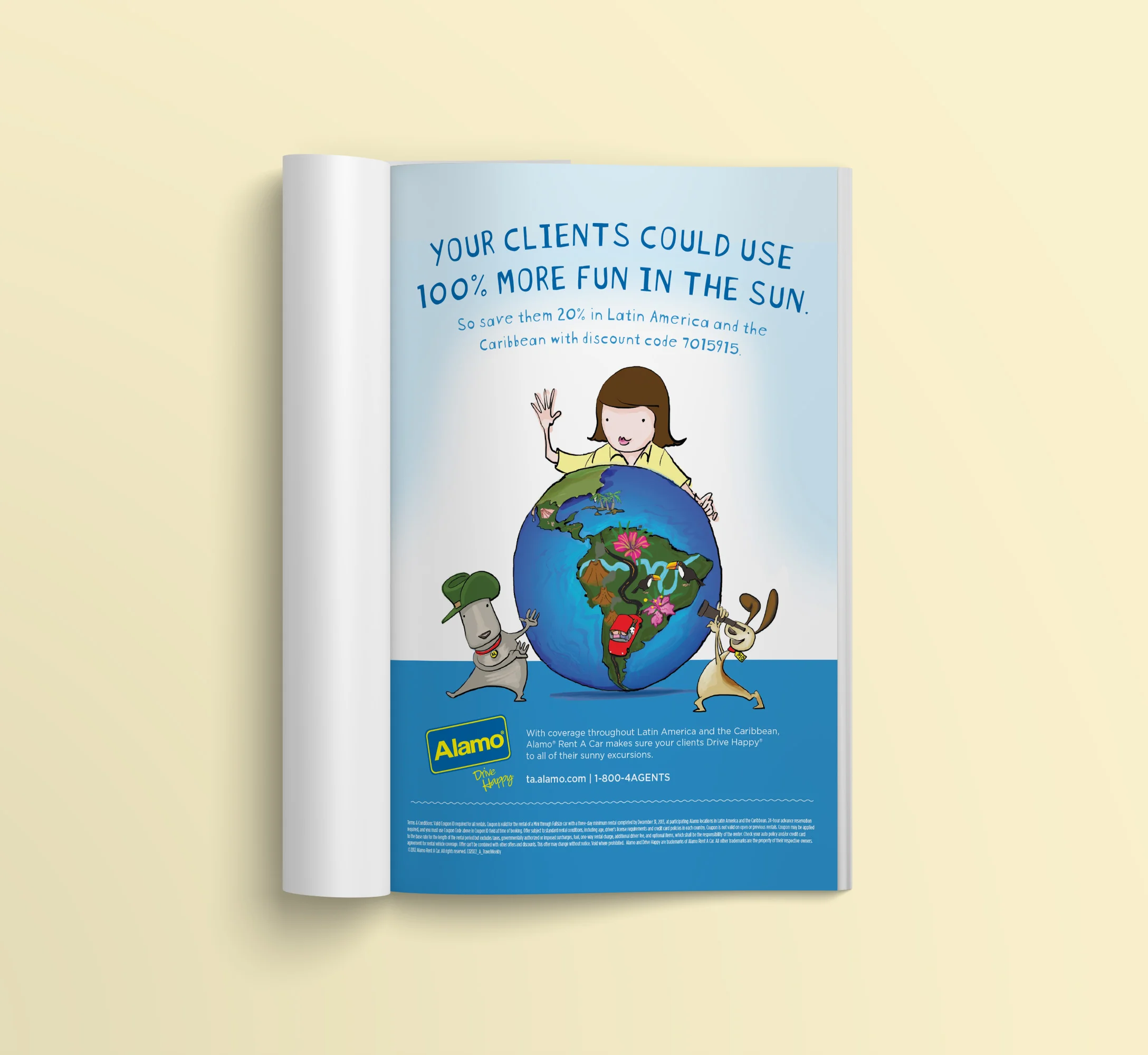 Alamo car-rental service requested a new series of ads for them to disperse to their publications. I worked closely with the illustrator, as he executed the concepts.